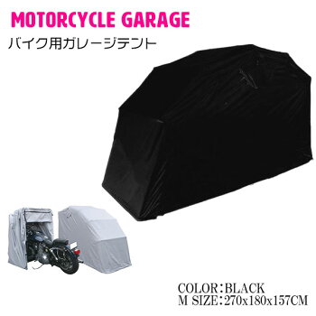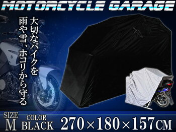 守る! バイクガレージ テント サイクルガレージ ブラック 黒 Mサイズ 270cmx180cmx157cm 車庫 バイクシェルター 自転車