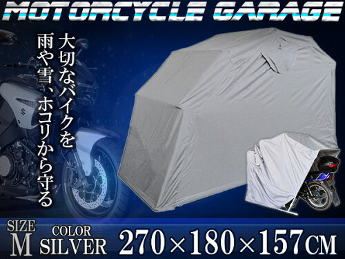 守る! バイクガレージ テント サイクルガレージ シルバー 銀 Mサイズ 270cmx180cmx157cm 車庫 バイクシェルター 自転車