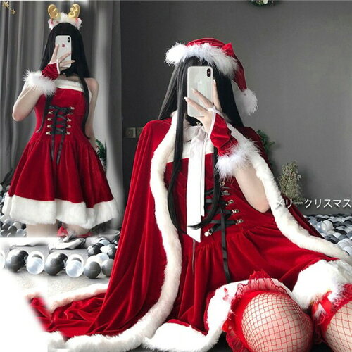 サンタコスプレ ワンピース レディース 可愛い クリスマス用コスチューム 帽子 手袋付き セクシー サンタクロース服 ロングマント追加可能 S M L