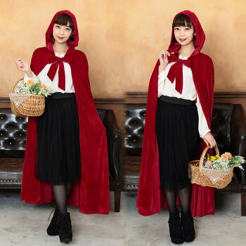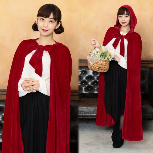 羽織るだけで赤ずきんにもなれる!首元のリボンは大きめで存在感大!●内容:フード付きマント●素材:ポリエステル100%●対応サイズ(約cm):Ladies/身長 155〜165cm、B 〜90cm、W 〜70cm、H 〜96cm●寸法 (約cm):丈122cm※注意事項:生産時期により仕様が変更される場合が御座います。
