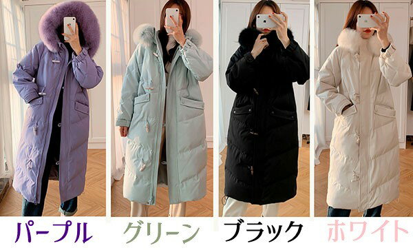 ダウンコート レディース コート 冬 きれいめ ダウン 大きいサイズ ファー アウター ダウンジャケット 暖かい 軽い ひざ丈 ダウンジャケット フード ラクーン スタンドカラー パープル ホワイト ブラック グリーン