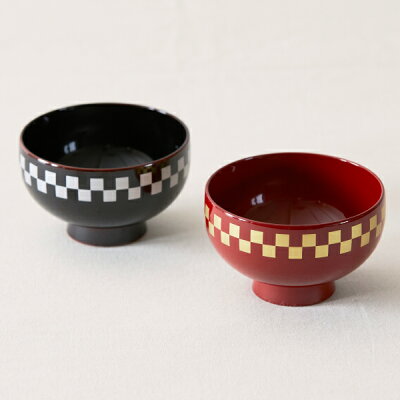 汁椀には、モダンな雰囲気の市松模様をあしらいました。