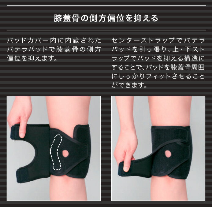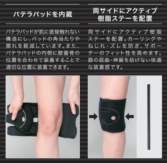 ●パテラパッドが肌に直接触れない構造にし、パッドの角当たりや擦れを軽減。