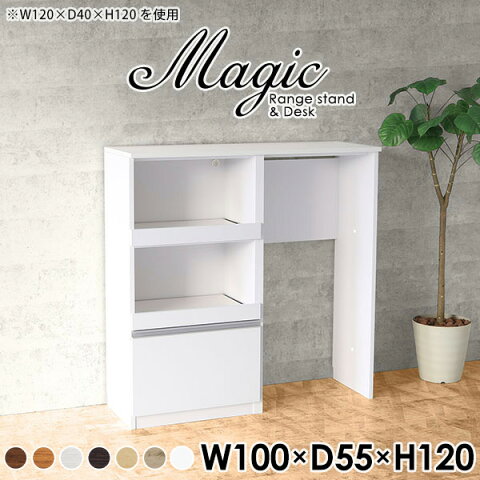 magic レンジ台×作業台 W100×D55×H120 木目サイズサイズ:約幅1000 奥行き550 高さ1200 mm材質[天板・スライド棚]メラミン樹脂化粧合板[前板]ブラウン・ダークブラウン・チーク/デルナチュレ化粧合板ホワイト/ポリエステル化粧合板ナチュラル・ホワイトウッド・オーク/強化紙[側板・内部]プリント化粧合板カラーブラウン/ダークブラウン/ホワイト/北欧チーク/ナチュラル/ホワイトウッド/オークからお選び下さい。