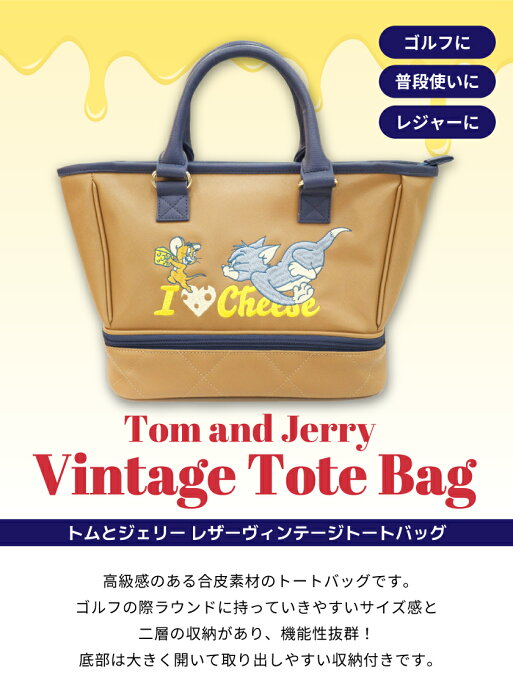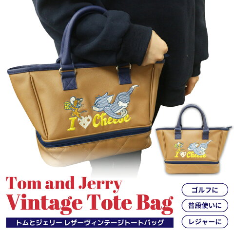 トムとジェリー レザーヴィンテージ トートバッグ ゴルフカートバッグ ランチバッグ 保冷バッグ ミニトートバッグ カバン ファスナー 保冷 保温 防水 大きめ 弁当箱 お弁当 水筒 ペットボトル 収納 巾着 シンプル ゴルフカバン ゴルフトート コンペ 景品 誕生日 プレゼント